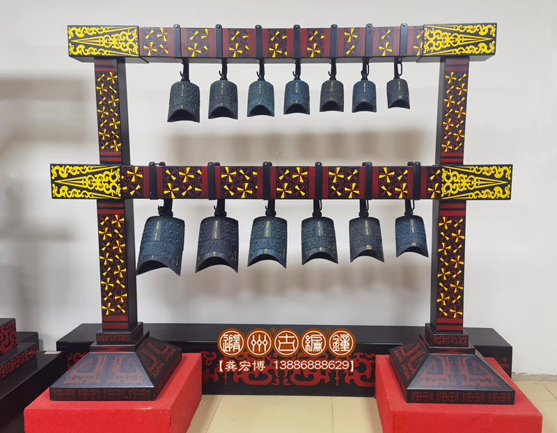 13件編鐘、小型編鐘,是根據(jù)曾侯乙編鐘設(shè)計(jì)制作,編鐘為青銅鑄造,采用標(biāo)準(zhǔn)音高A=440Hz調(diào)音,音階G4—A6。編鐘大梁采用優(yōu)質(zhì)松木制作,表面噴漆,彩繪花紋;配有保管編鐘用的木箱,便于運(yùn)輸和儲(chǔ)存。這套編鐘適合教學(xué)課堂展示使用,搬運(yùn)比較方便,音階齊備,演奏方便簡(jiǎn)單。現(xiàn)貨產(chǎn)品價(jià)格優(yōu)惠,歡迎咨詢!
