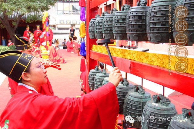 古編鐘公司制作的十六件八卦編鐘、十六件編磬、特鐘、特磬等眾多禮器、樂(lè)器,用于祭孔典禮。