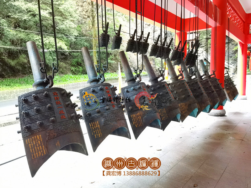 2023年7月,隨州古編鐘公司制作的10件大型曾侯乙甬鐘及一組旋律編鐘,在堯治河旅游景區(qū)完成安裝工作。當悠悠鐘聲回蕩山谷時,它那古樸渾厚的樂音,激蕩起人民對黨的赤誠忠心,又仿佛在訴說革命先輩對未來的期望。這次將編鐘作為文化的載體,展現(xiàn)了中華歷史的厚重和新時代征程的拓印,這份紀念豐富了景區(qū)的文化內(nèi)涵,映襯了自然景色,讓游客在旅途中感受山水古樂的酣暢淋漓。